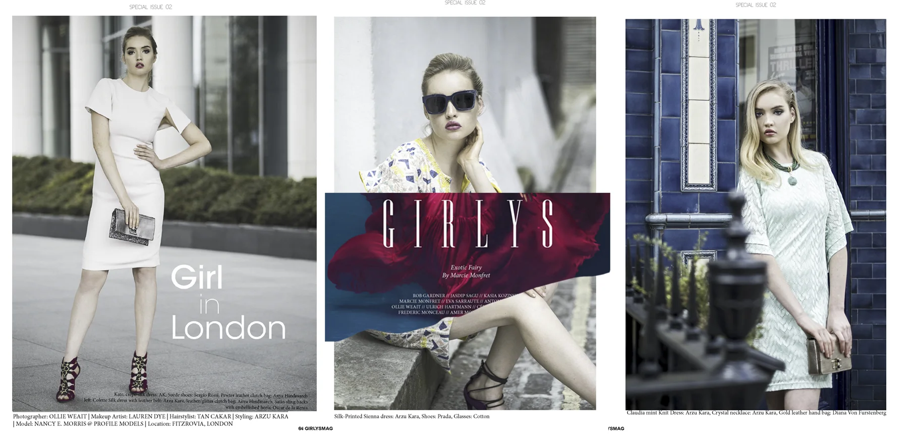 The shoot that I did last Autumn in London's Fitzrovia district for Arzu Kara's SS17 campaign has had some images published as editorial in Girlys Magazine Special Issue No. 2, December 2016. Arzu is a brilliant British designer and incredibly talented. It's always great to see work published and I was very grateful for the make up artist - Lauren Dye and hair by Tancakar Colour.