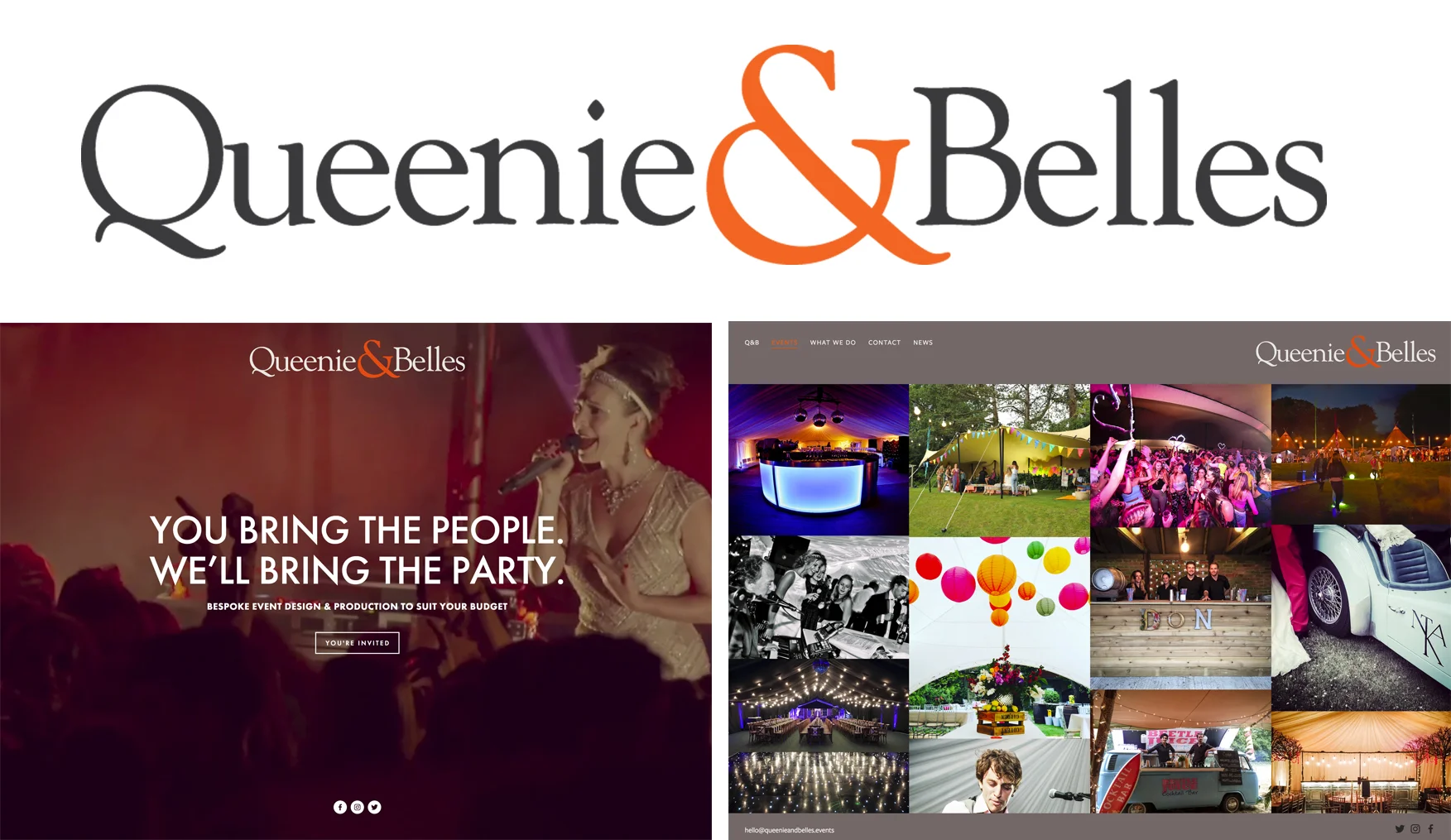 I recently had the good fortune to work with two very lovely women at the fabulous Queenie and Belles events production and design planners, Jane and Annabel. Since 2007 they've been creating bespoke parties, wedding receptions and corporate events. Their attention to detail and fun factor has enabled them to grow into one of the most sought-after events companies in the South East of England. Check out their new website which I designed, along with their new logo. I'm taking pictures for them at a number of their events this Summer, so watch this space... www.queenieandbelles.events